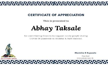 Certificate to Mr. Dev Jay Tapsnkumar student of Dhirubhai Ambani Information